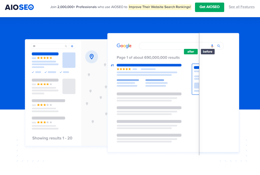 - AIOSEO supports Local SEO and WooCommerce SEO.